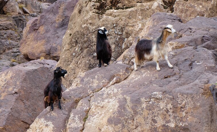 Continue to the desert town of Tinghir to find fantastic views of neighboring villages along an extensive river oasis that features 30 miles (48 km) of palm trees. Don’t miss the ancient and colorful Jewish quarter of Ali Ait el Haj for a glimpse into Morocco’s rich Jewish history. Your next stop is the Todra Gorge at 984 feet (300 m) high, where you can take an easy walk through the gorge or relax in the cool shallow water. As you pass through the Valley of a Thousand Kasbahs, be on the lookout for nomads tending their animals.