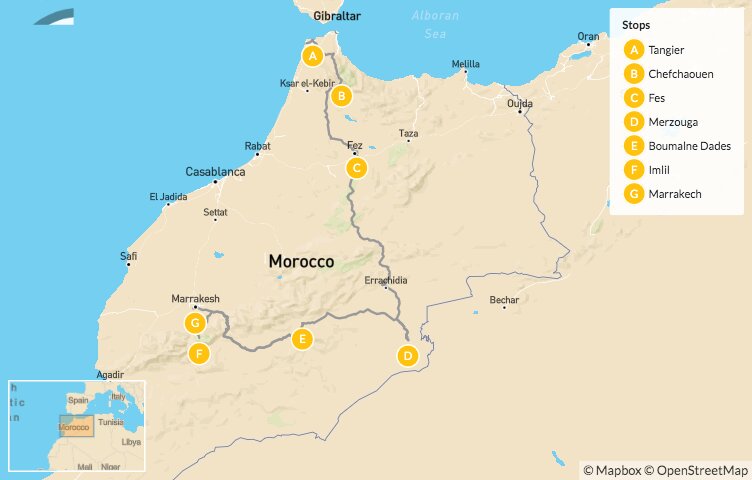 Map of Spring Tour of Morocco: Cities, Deserts, Valleys & Roses – 13 Days