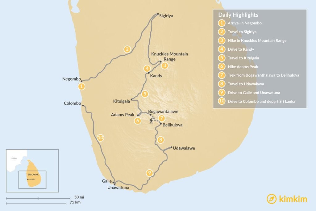 Map of Sri Lanka: Trails of the Ancient Kingdom – 10 Days