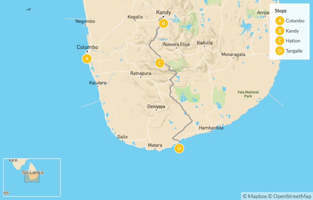 Map of Sri Lanka Wellness Getaway: Cultural Excursions, Outdoor Aventures & Historic Sites – 13 Days