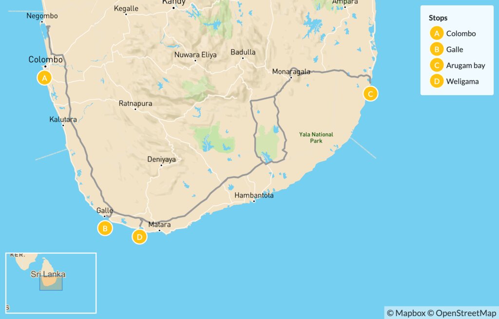 Map of Sri Lanka’s Big Waves & Sandy Shores – 12 Days