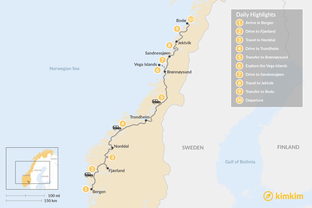 | Day 5 | Drive from Trondheim to Brønnøysund | Brønnøysund |