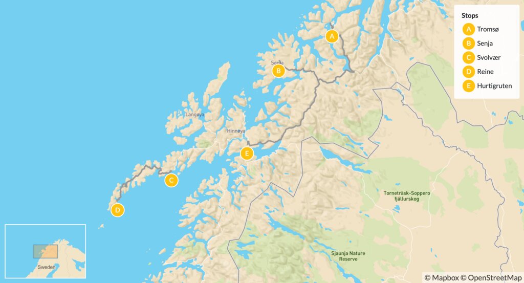 | Day 13 | Drive to Svolvær, Overnight Hurtigruten Ferry to Tromsø | Hurtigruten |