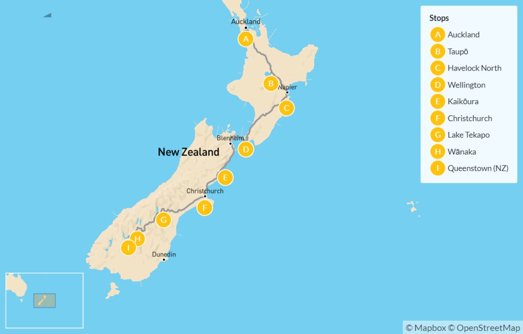 Map of Sustainable New Zealand Road Trip: An Eco-Friendly Journey from Auckland to Queenstown – 13 Days