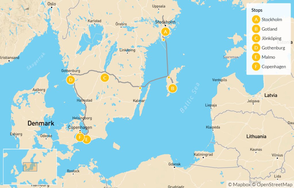 Map of Swedish Self-Drive Adventure: Vikings, Islands, Nature & Culture – 14 Days