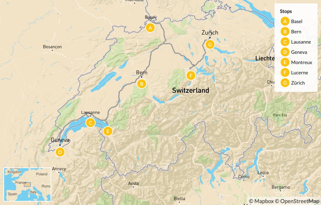 Map of Switzerland Festive Christmas Highlights – 14 Days