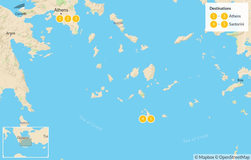 Combine ancient Athens with Santorini sunsets on this quick 6-day jaunt through a few of Greece’s most stunning sights. After discovering the capital’s classical treasures and gastronomic gems, you’ll hop over to Santorini to finish your trip with a taste of island life—sailing its rugged coast, exploring whitewashed villages, and sampling local wines.