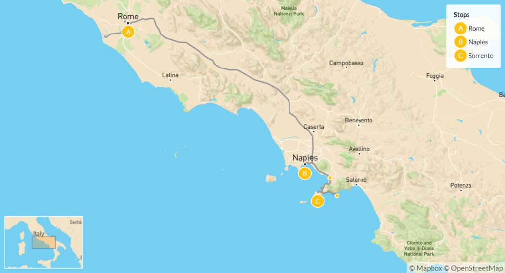 Map of Tastes of Southern Italy: Rome, Naples & Sorrento – 10 Days