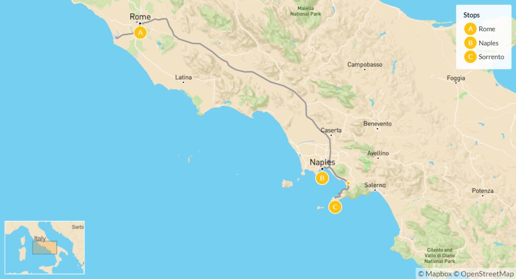 Map of Tastes of Southern Italy: Rome, Naples & Sorrento – 7 Days