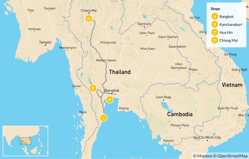 Map of Thai Culture for Families: Bangkok, Kanchanaburi, Hua Hin & Chiang Mai – 14 Days