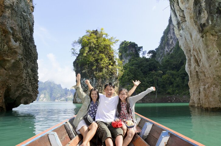 Say goodbye to northern Thailand today because, after breakfast, your family will be picked up from the hotel and driven to Chiang Mai Airport for your flight south to Surat Thani. Upon arrival, your private driver will take you to Khao Sok National Park, a massive 280-square-mile (451 sq km) preserve of ancient rainforests, emerald lakes, and soaring limestone islets.