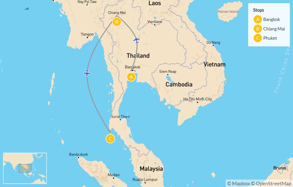 Map of Thailand City, Mountain & Beach Escape – 8 Days
