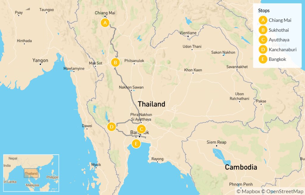 Map of Thailand Culture & History: Northern Chiang Mai to Central Bangkok – 9 Days
