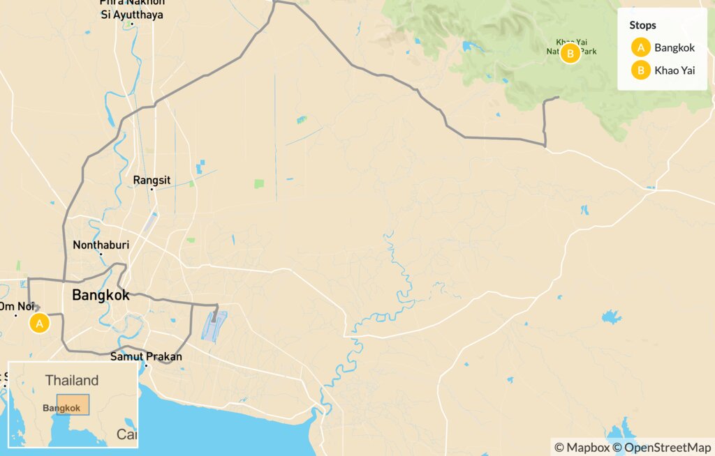 Map of Thailand Family Adventure in Bangkok & Kao Yai – 7 Days