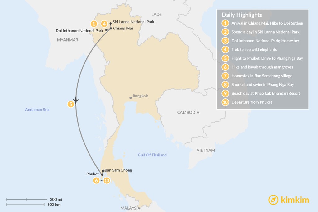 Map of Thailand North to South Adventure: Chiang Mai & Phuket – 10 Days