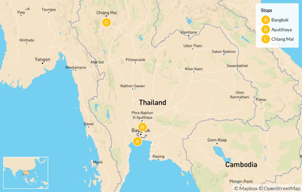 Map of Thailand’s Temples & Palaces: Bangkok, Ayutthaya & Chiang Mai -7 Days