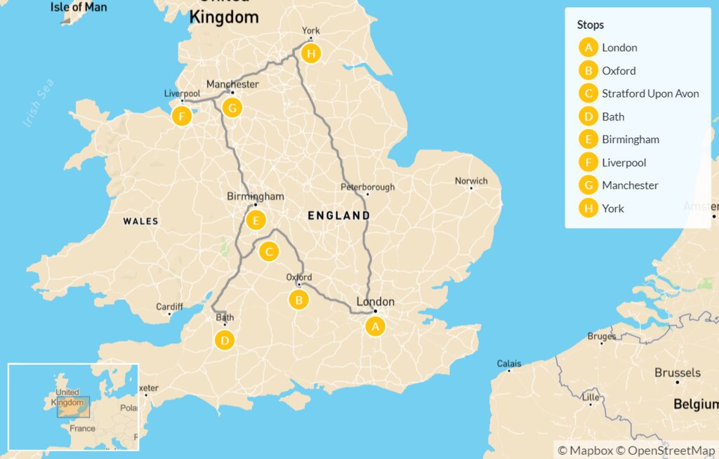 Map of The Ultimate Tour of England: London, Oxford, Bath, Liverpool, Manchester & More – 14 Days