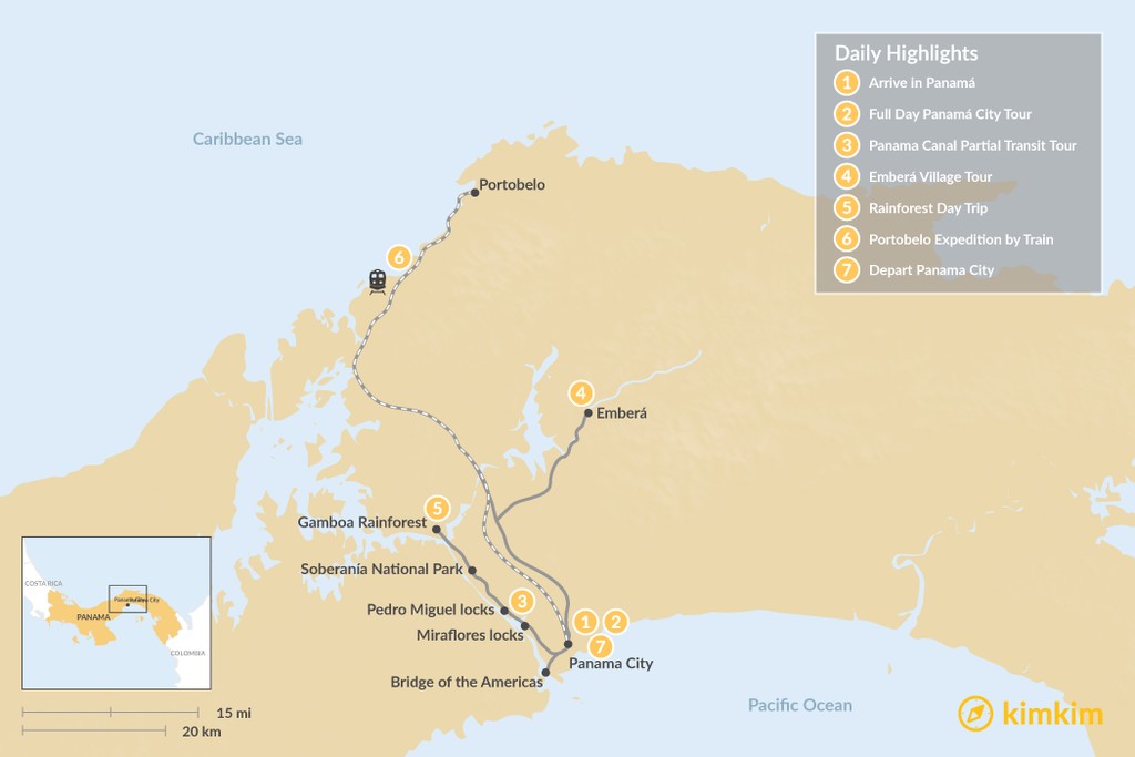 Map of The Wonders of Panama – 7 Days