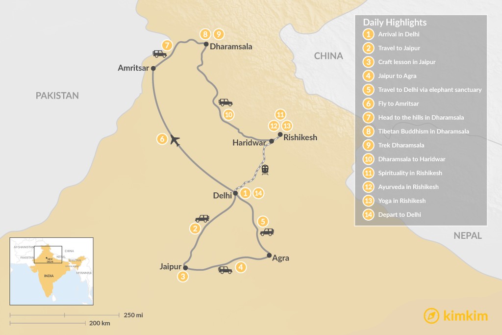 This tour takes you to some of the most spiritually important places in North India. Be introduced to Hinduism, Buddhism, and Sikhism at Rishikesh, Dharamsala, and Amritsar, and learn about ancient yoga and Ayurvedic traditions. Visit the classic and popular “Golden Triangle” of Delhi, Agra and Jaipur but from a different perspective by meeting local artisans, staying in village homestays, and engaging in other socially responsible tourism and business ventures.