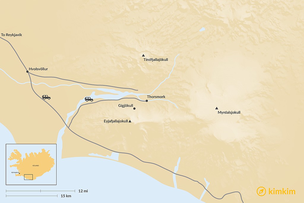 Map of Thorsmork Super Jeep Adventure – Day Tour
