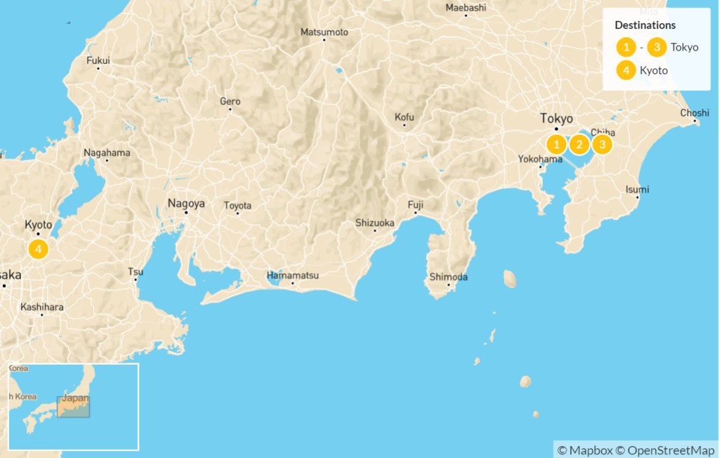 Map of Tokyo & Kyoto Cultural Adventure – 5 Days