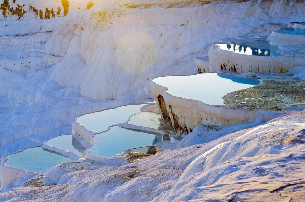 Today, your driver will take you 3.5 hours inland to Pamukkale, famous for its baby-blue, mineral-rich thermal waters flowing down white travertine terraces. Pamukkale means “Cotton Castle” in Turkish and is a remarkable landscape comprising mineral forests, petrified waterfalls, and a series of terraced basins. You’ll get to soak in the hot springs while you’re here and take in the incredible views.