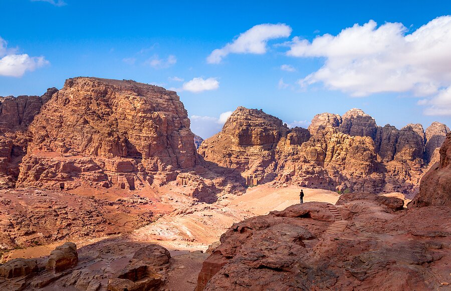 If you’re feeling adventurous, climb your way back up the 800 steps to the Monastery, Petra’s largest and lesser-visited monument. For a stunning view overlooking the Treasury and jagged mountains beyond, hike the steep stone-carved staircase to the top of Jabal al-Khubtha.