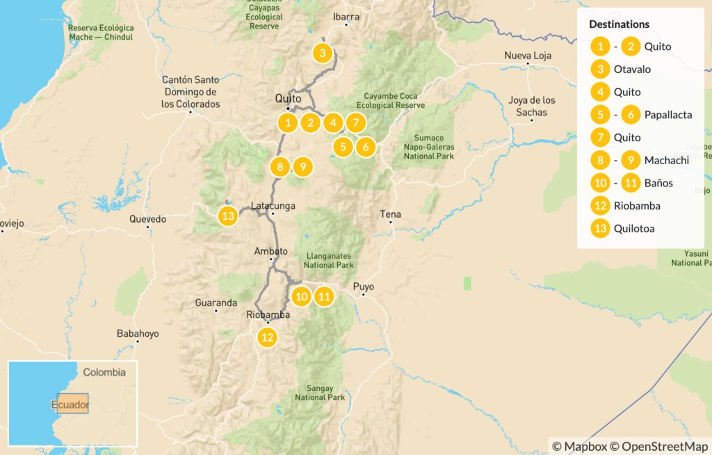 Map of Trekking in Ecuador’s Highlands: Cotopaxi, Chimborazo, & More – 14 Days