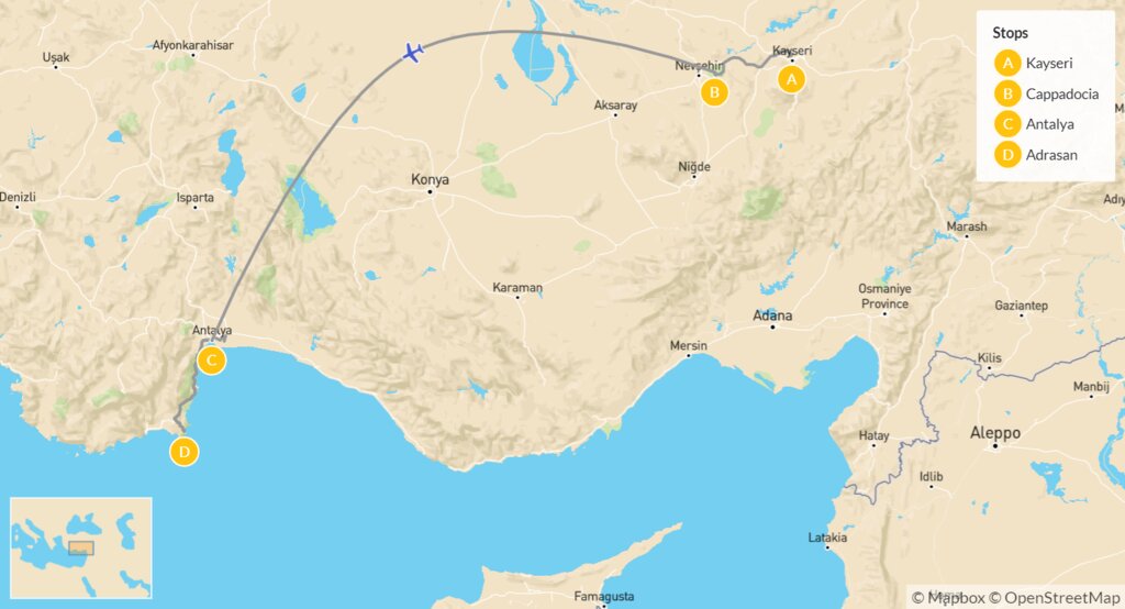 Map of Turkey Active Adventure: Cappadocia, Antalya & Adrasan – 8 Days