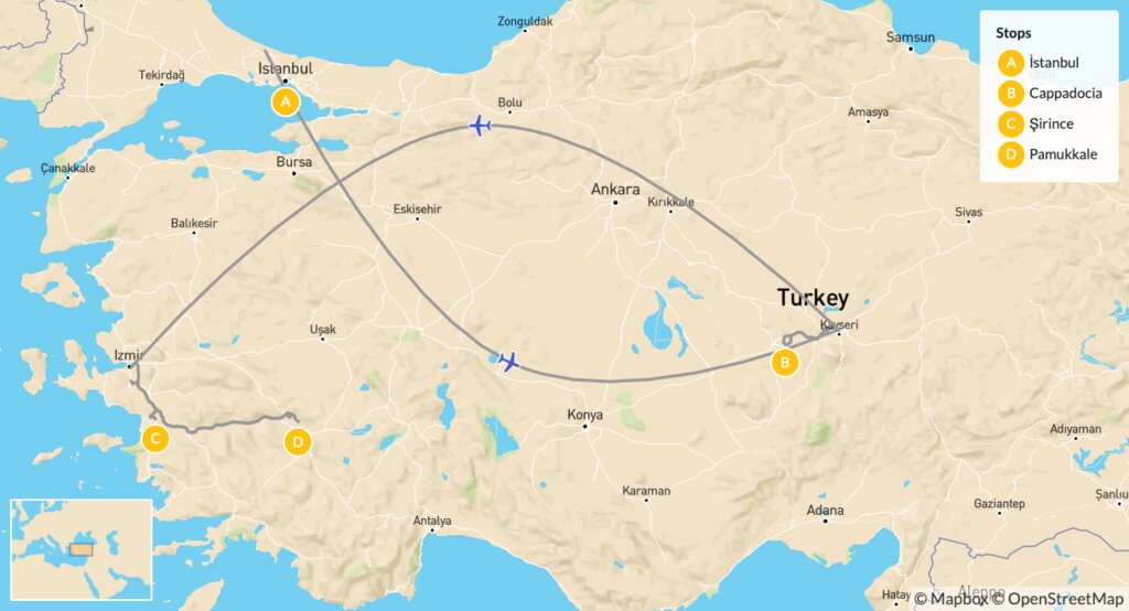 Map of Turkey at a Glance: Istanbul, Cappadocia, Ephesus & Pamukkale – 9 Days