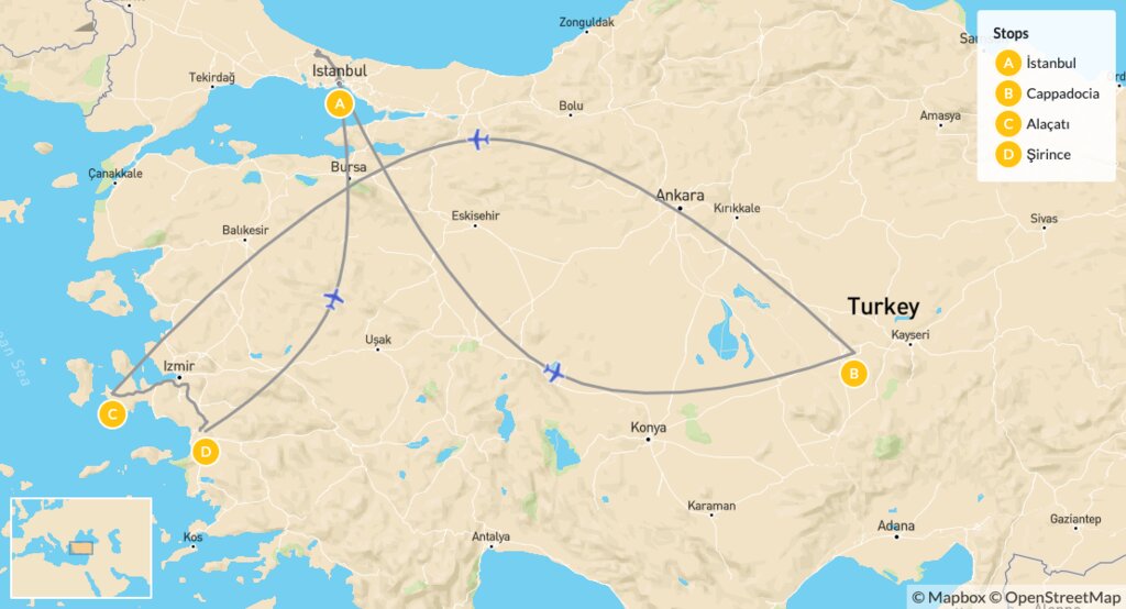 Map of Turkish Food & Culture Tour – 12 Days