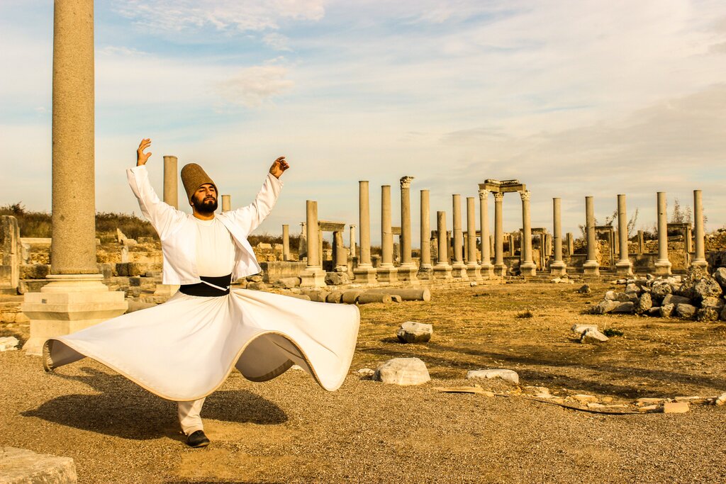 In the evening, your driver will take you to the nearby town of Avanos to watch a whirling dervish ritual dance in the 13th-century museum of Saruhan Caravanserai. Watch as the dancers, clad in white robes and conical hats, whirl around the room.