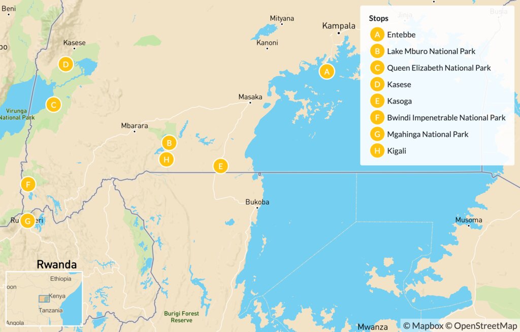 Map of Uganda & Rwanda: Wildlife, Culture & National Parks – 11 Days