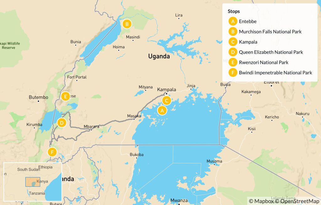 Map of Uganda’s National Parks: Kidepo to Bwindi – 14 Days