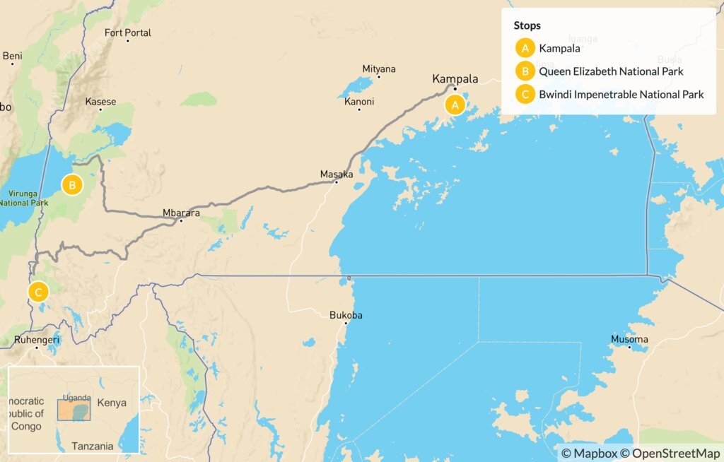 Map of Uganda’s National Parks: Queen Elizabeth & Bwindi – 7 Days