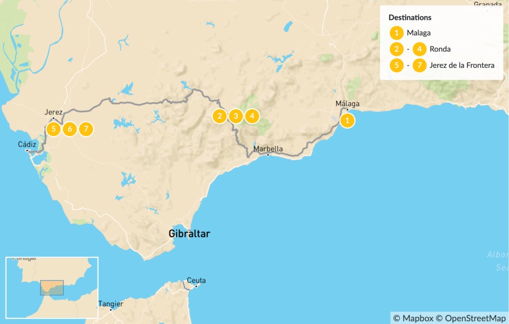 | Day 5 | Drive to Jerez via the White Villages | Jerez de la Frontera |