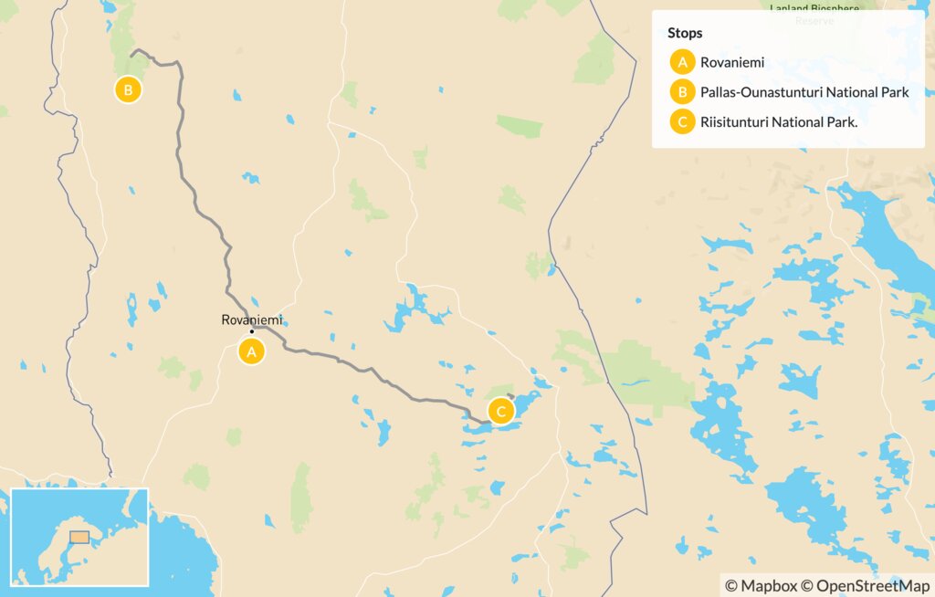 Map of Ultimate Arctic Adventure in Finland – 10 Days