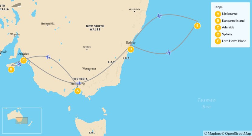 Map of Ultimate Australian Luxury Escape: Melbourne to Lord Howe Island – 10 Days