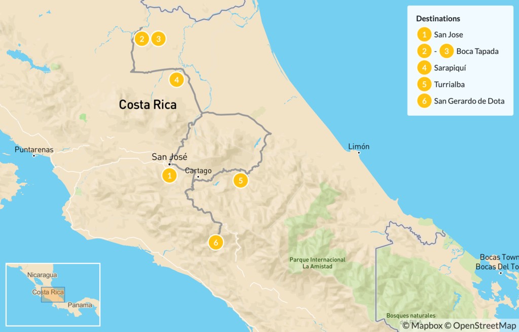 | Day 1 | Arrival in Costa Rica – Experience San José’s Culture | San Jose |