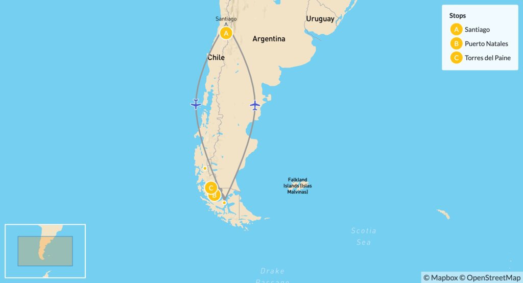 Map of Ultimate Chilean Patagonia Adventure – 12 Days