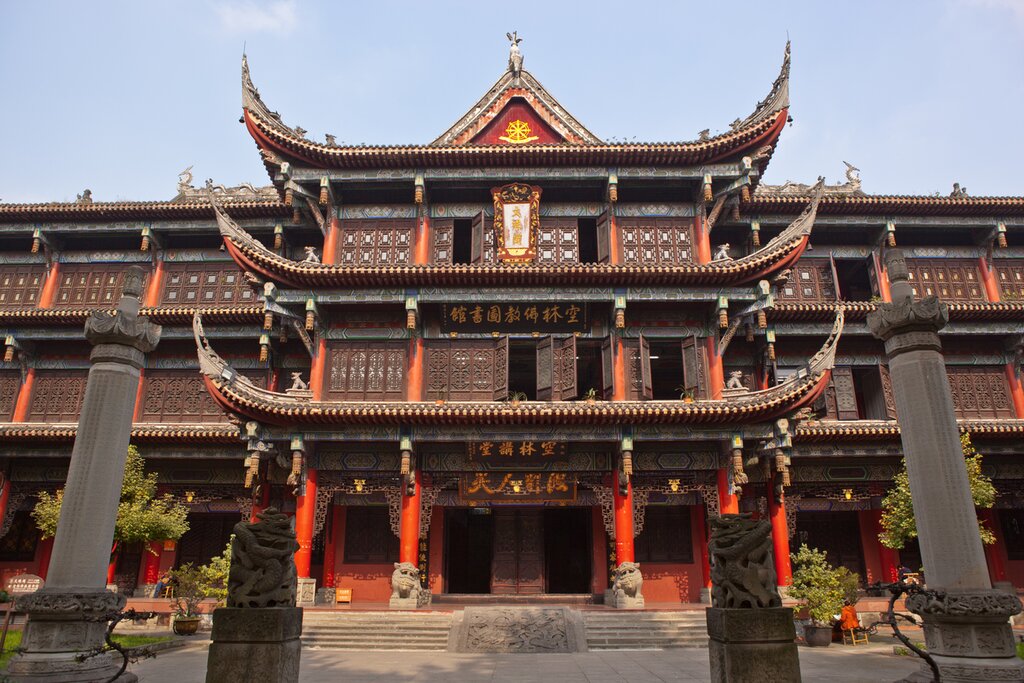 Say goodbye to Xi’an this morning as you head to the station to catch a 3.5-hour bullet train to Chengdu, the capital of Sichuan and home to the beloved giant panda. When you arrive, meet your driver outside the station and transfer to your hotel to check in and freshen up. Then, set off on a city tour, starting at Wenshu Yuan Monastery, one of Sichuan’s largest and best-preserved monasteries, dating back to the Tang Dynasty. As you enter the ornate gates, you’ll be greeted by tranquil courtyards and beautifully landscaped gardens.