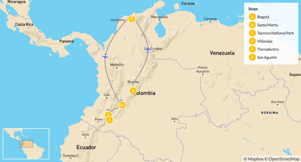 Map of Ultimate Colombia Family Adventure: Archaeology, Deserts, Beaches & Jungles – 10 Days
