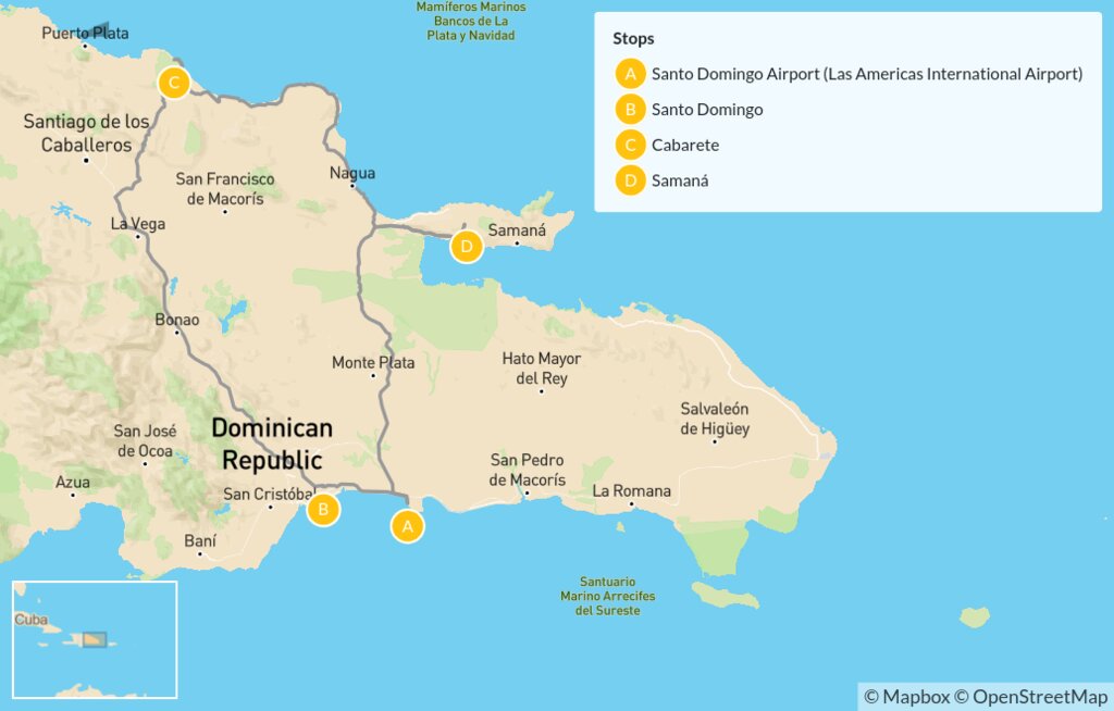 Map of Ultimate Dominican Republic: Santo Domingo, Cabarete & Samaná – 10 Days
