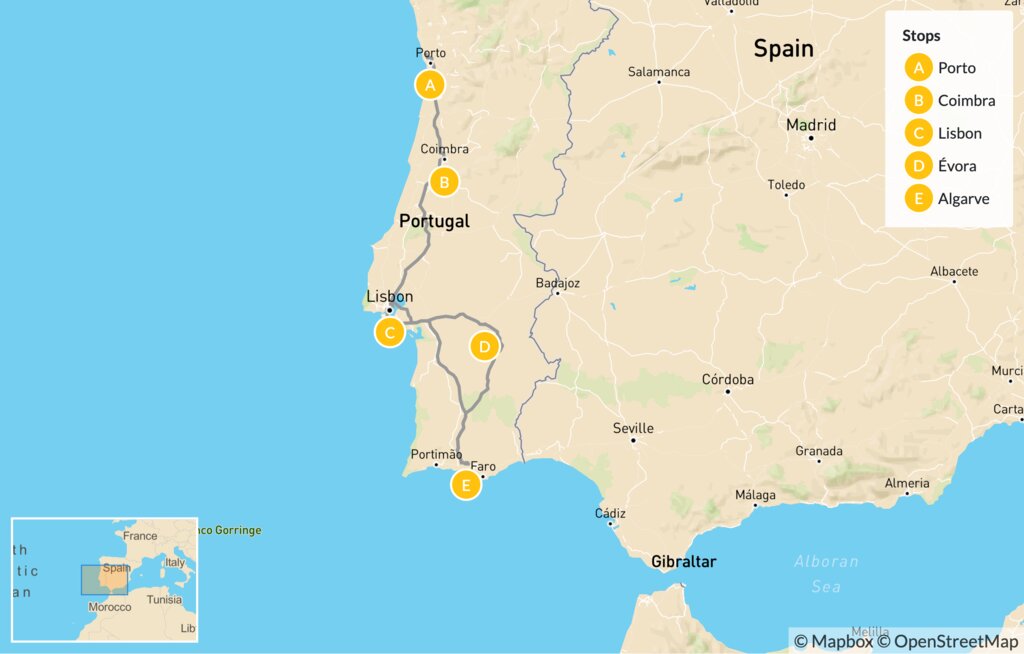 Map of Ultimate Family Trip to Portugal: Porto, Coimbra, Lisbon, Évora & the Algarve – 14 Days
