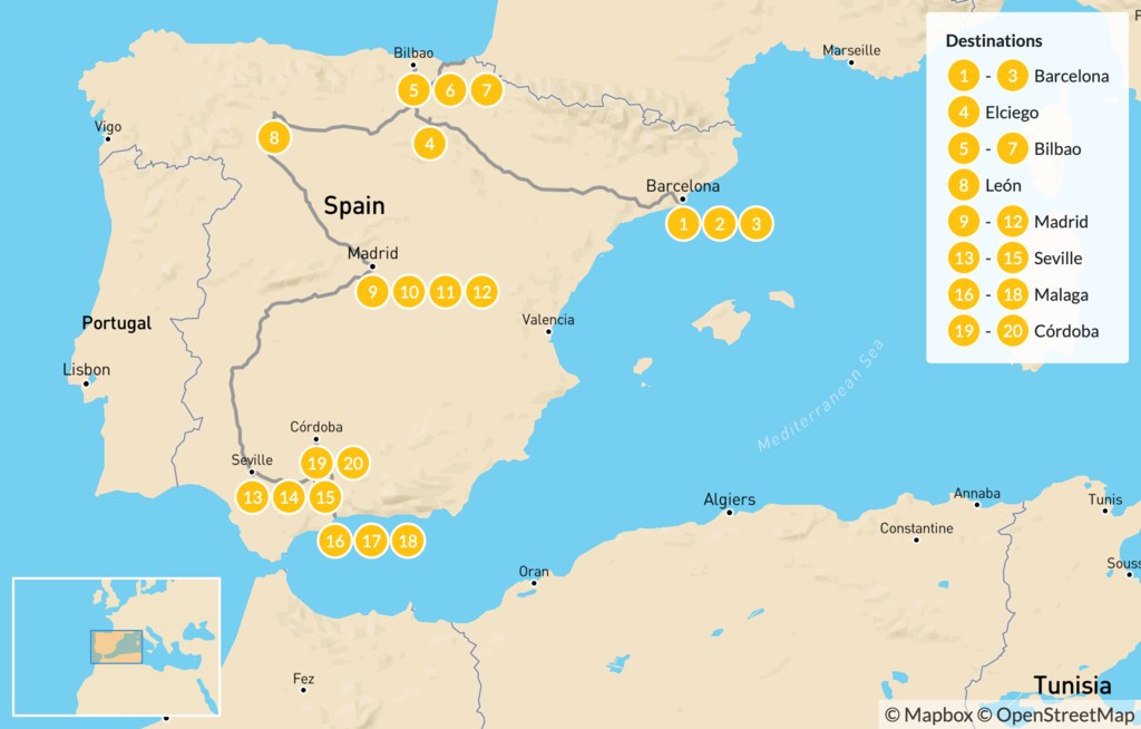 Map of Ultimate Food, Culture & Wine Tour of Spain – 21 Days T8138