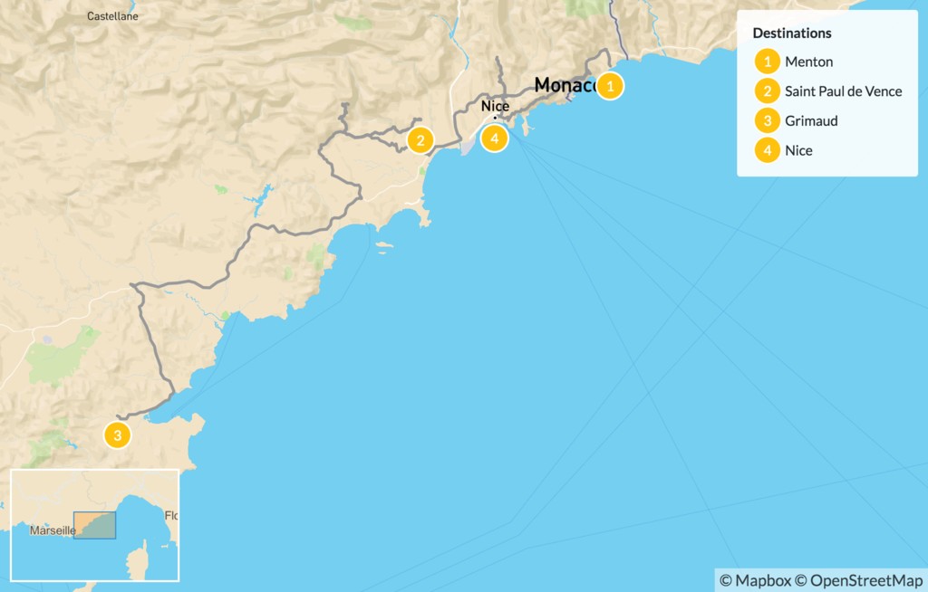 Map of Ultimate French Riviera Road Trip – 5 Days