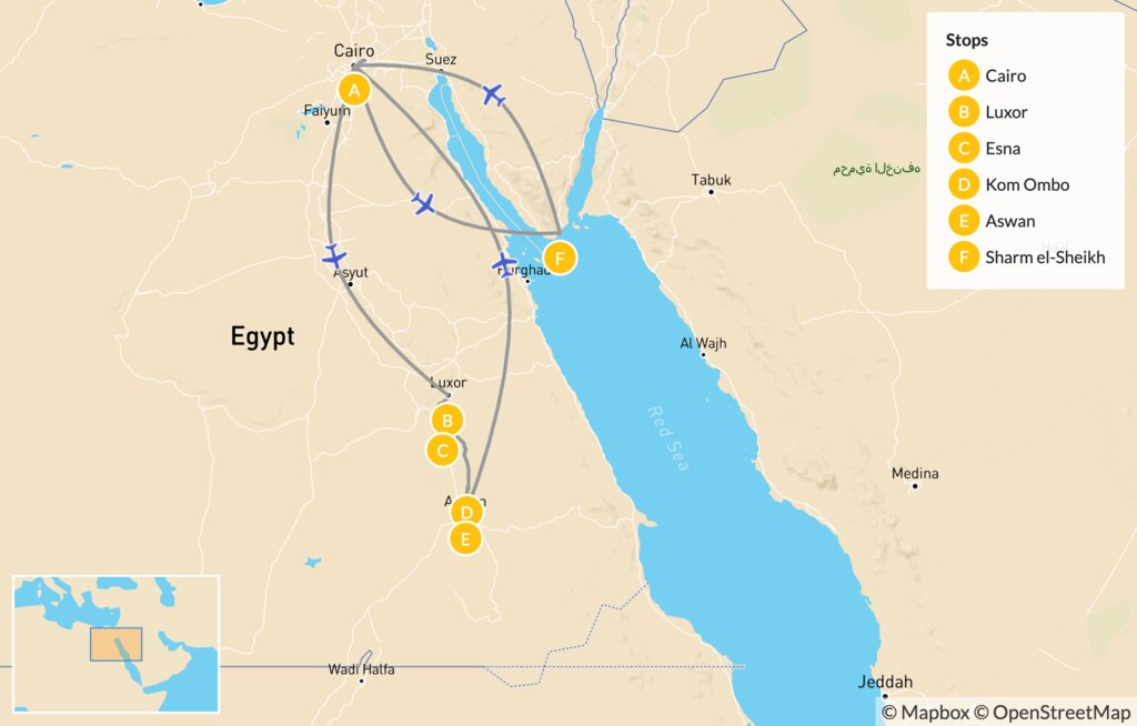 Map of Ultimate Highlights of Egypt: Cairo, Nile Cruise & Sharm el-Sheikh – 16 Days