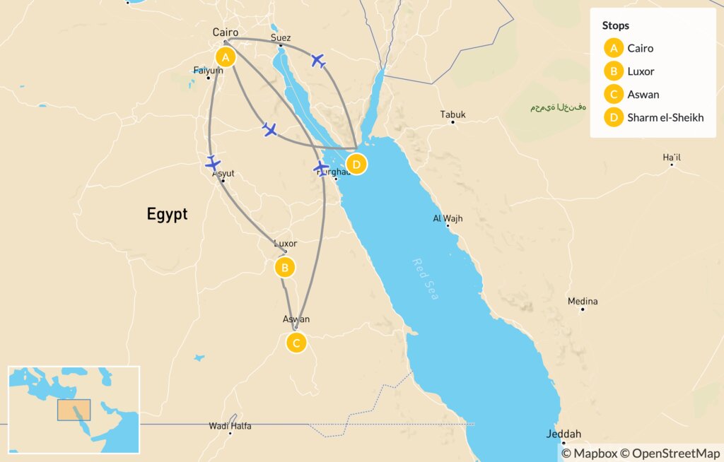 Map of Ultimate Highlights of Egypt: From Cairo to the Red Sea – 12 Days