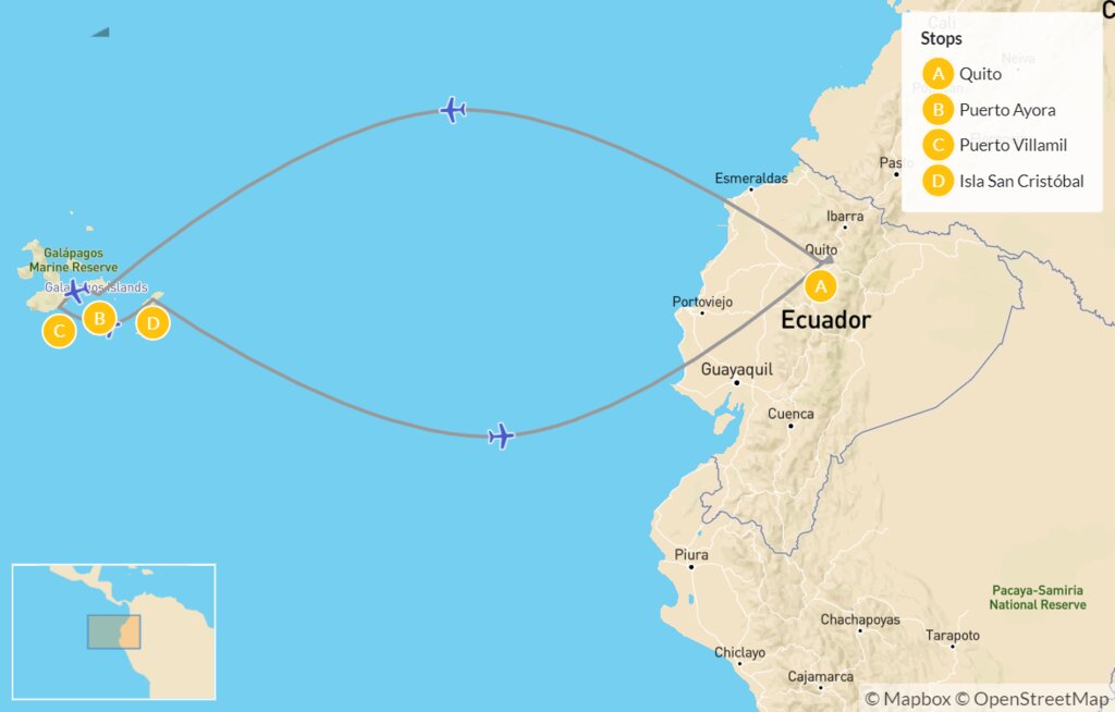 Map of Ultimate Luxury Exploration of the Galápagos – 10 Days