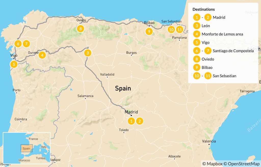 Map of Ultimate Northern Spain Road Trip: Madrid, Galicia & Basque Country – 12 Days
